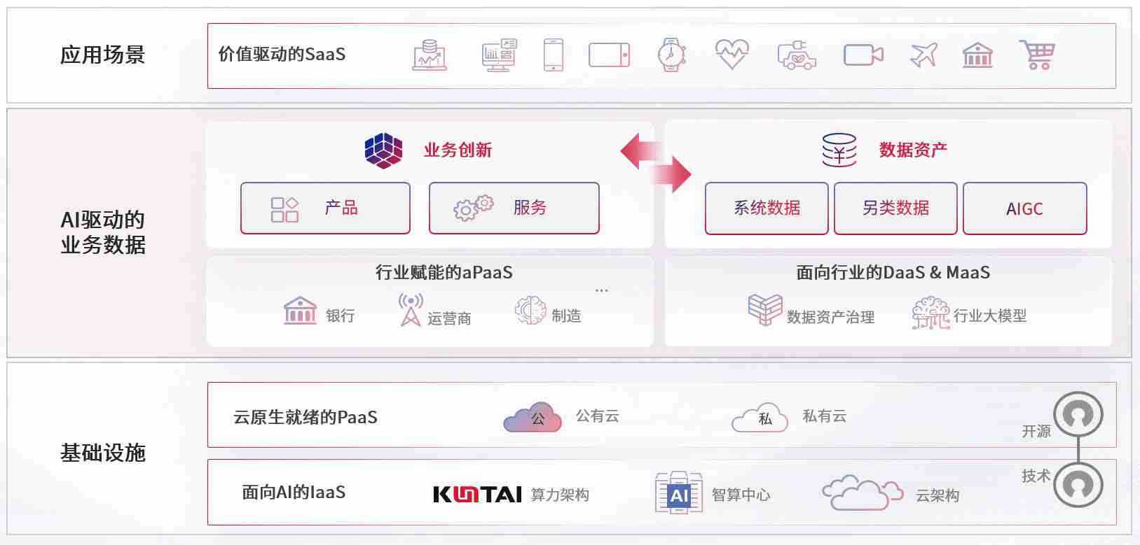 数字时代,,围绕企业数字化转型的关键要素,,,EZPAY钱包数码开创性的提出数云融合战略和技术体系框架,,着力在云原生、、、、数字原生、、、AI原生和信创产业上架构产品和服务能力,,,,为处在不同数字化转型阶段的快消零售、、汽车、、、金融、、、医疗、、政企、、教育、、、、运营商等行业客户提供泛在的敏捷IT能力和融合的数据驱动能力,,,构建跨界融合创新的数字业务场景和新业务模式,,,助力企业级客户建立面向未来的核心能力和竞争优势,,全面推动社会的数字化、、智能化转型升级。。